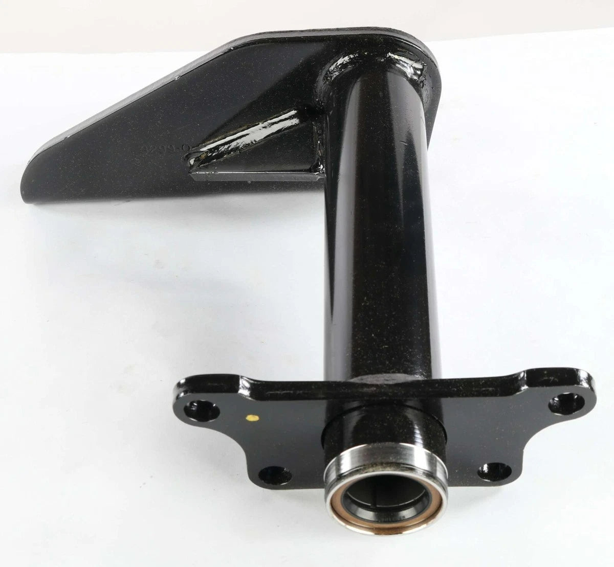 The bracket provides a mounting support A853299Q6257 for the brake chamber (actuator) and interfaces with a camshaft / slack adjuster in the air brake assembly. It helps maintain proper alignment, stability, and absorbs mechanical load / vibration. Air Brake Chamber Bracket, work condition, used take-off.